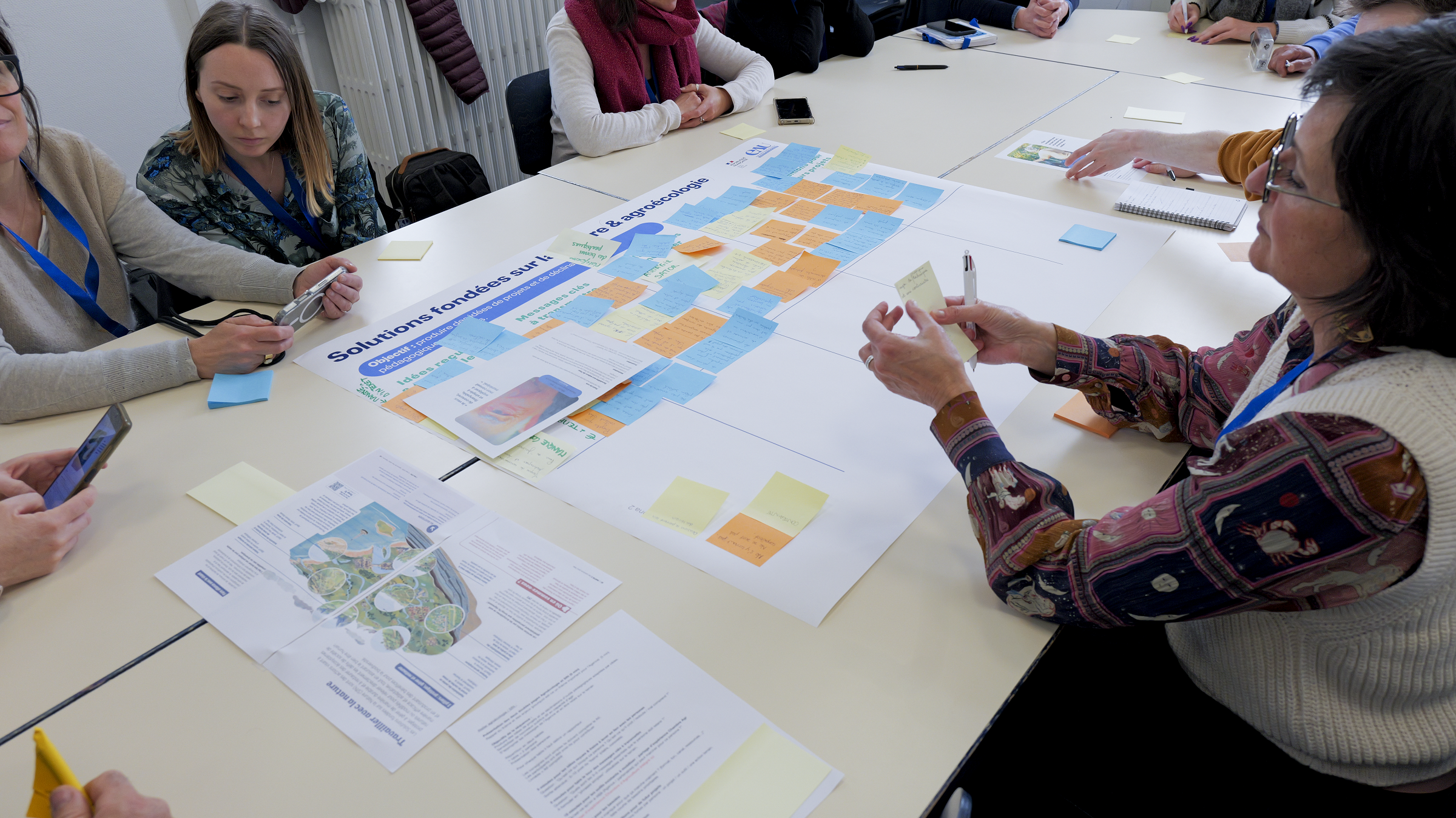 Lors des ateliers World café sur le changement climatique, les solutions fondées sur la nature et l’agroécologie, les participants ont travaillé à partir de personas (agriculteurs, industriels, jeunes, élus…) pour imaginer de nouveaux projets et des déclinaisons d’outils pédagogiques adaptées à chaque cible. L’objectif de cette séquence était de permettre à chacun de mieux s’approprier les messages clés de l’Agence et de renforcer la capacité des acteurs à en devenir relais sur le terrain, y compris auprès de publics qu’ils ont moins l’habitude de sensibiliser. Les échanges ont fait ressortir des besoins concrets :